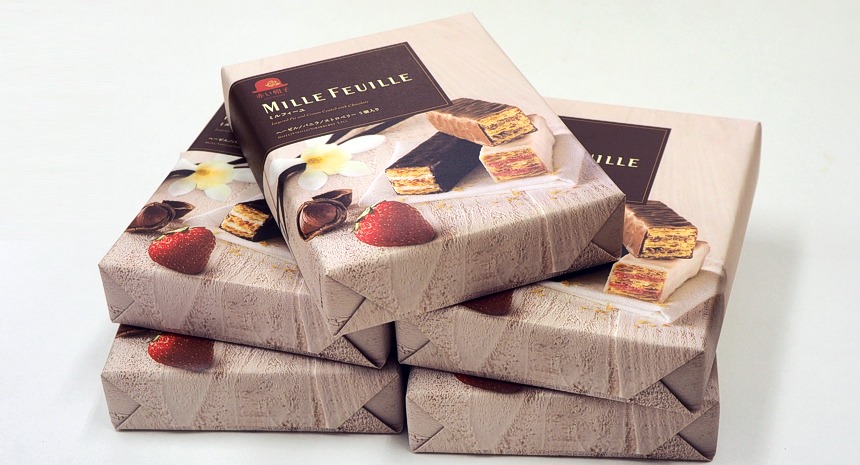 MD化粧品をご購入の方全員に、『赤い帽子ミルフィーユ5本入り』をプレゼント致します。3種類のクリームをサクサク食感のパイ生地でサンドし、口どけの良いチョコレートで包みました。お茶菓子にぴったりな少し贅沢なミルフィーユ、どうぞこの機会にお試し下さい。